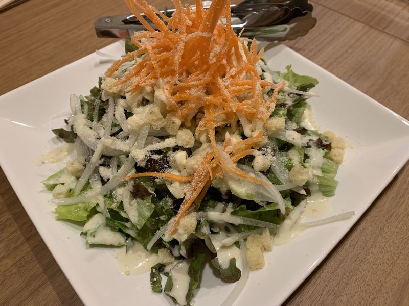 野菜を取ろうと、逸品だと書かれていた「大根ちりめんサラダ」を頼んだら、結局なかったので「シーザーサラダ(税抜590円)」に変更。