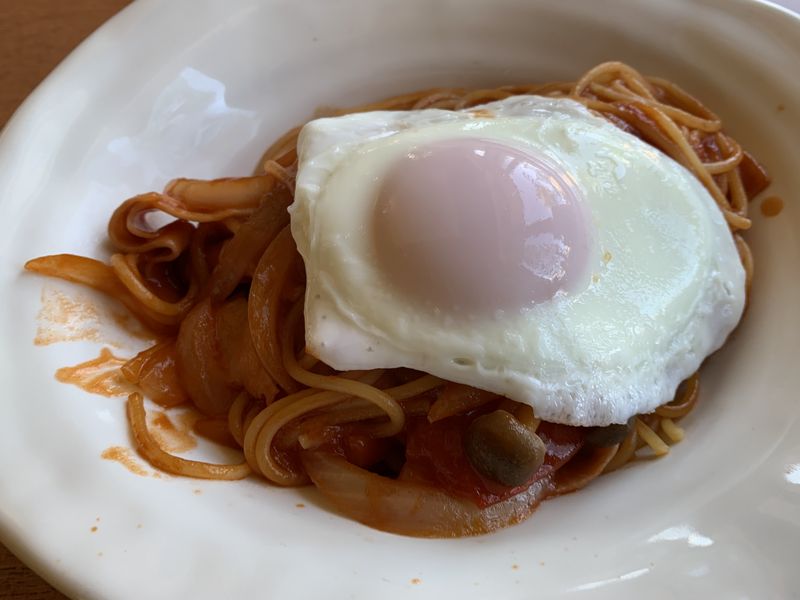 そして目玉焼きが乗せられたナポリタンが運ばれてきました。