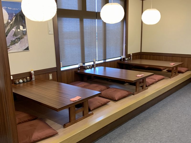 中はそこそこ広いです。窓側にカウンター席、中央にテーブル席、そしてこちらの小上がりの席がありました。