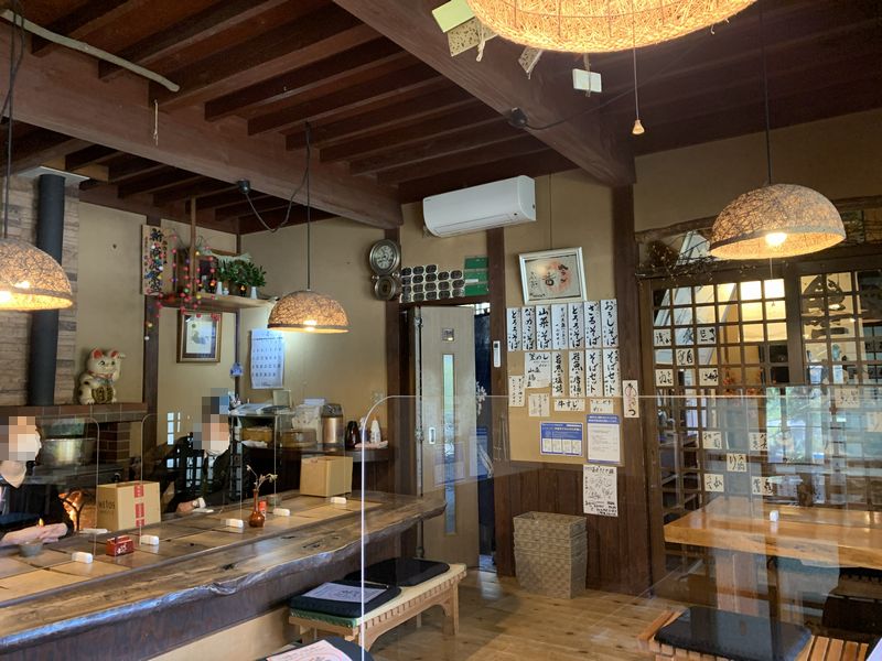 店内は田舎風の作りで、奥には囲炉裏のある畳敷きの部屋もありました。