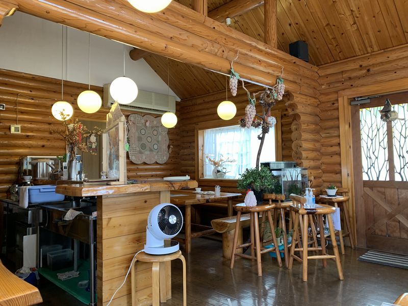 お店はログハウス作り。3つのテーブル席がある小さなお店で、ご夫婦2人で切り盛りされていました。
