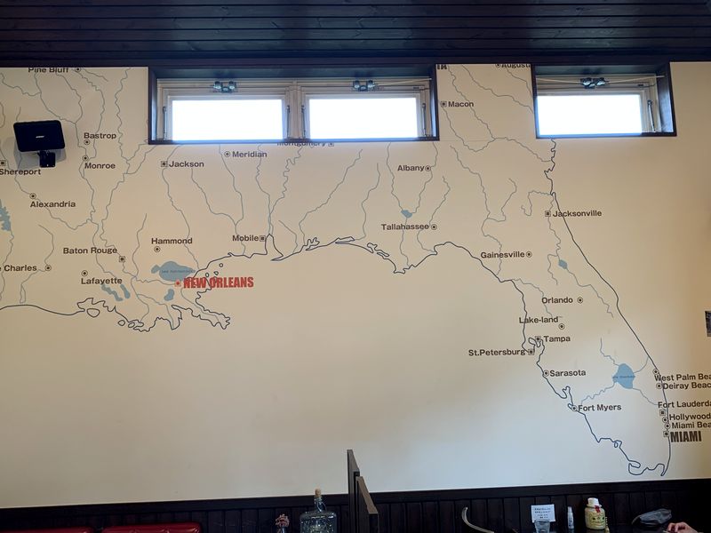 内装はやはりカントリーウエスタン?調と言っていいのかわかりませんが、アメリカ南部を彷彿とするような感じで、壁にもアメリカ南部の地図が描かれていました。
