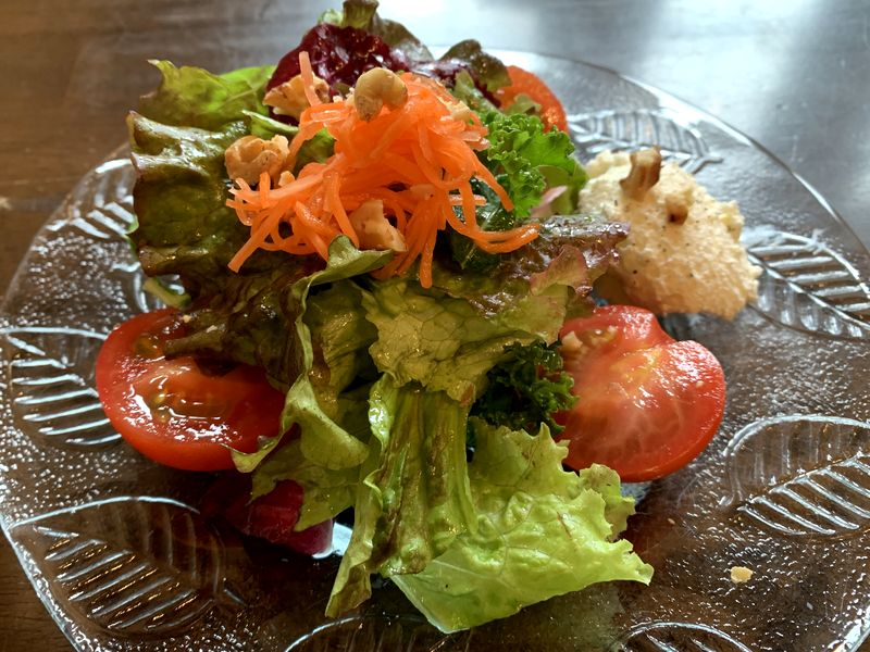 最初に瑞々しいたっぷり野菜のサラダが出されます。