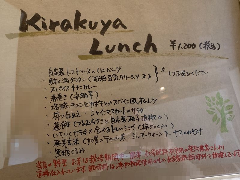 また、電話番号が開示されていないので、「KIRAKUYAランチ」という週替わりプレートランチは予約はが必要らしいので、インスタのDMから予約する必要があります。