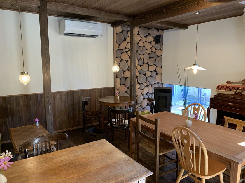 店内は、ペレットストーブ専門店がオーナーということから、木の温かみを感じる作りで、タイルも多用されていました。