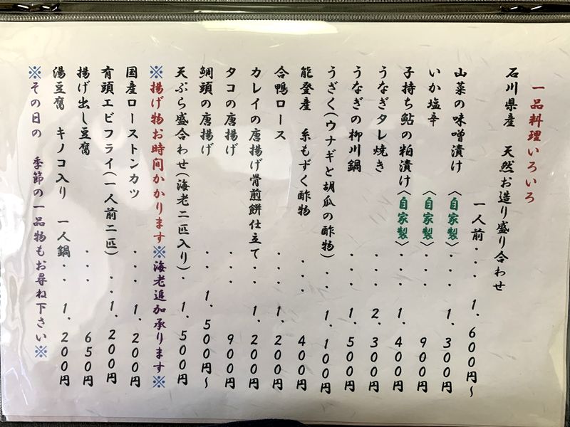 お品書きです。