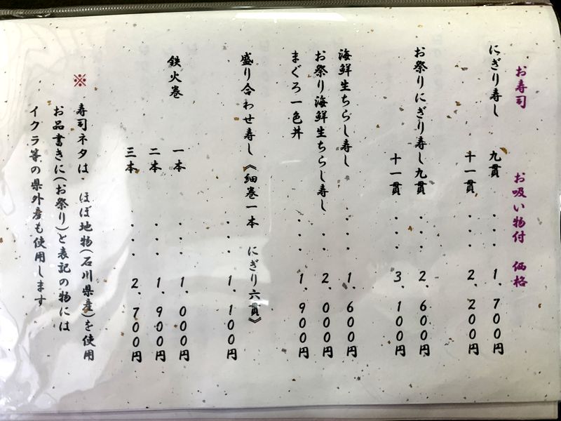 寿司割烹なので、寿司以外のメニューも色々あります。