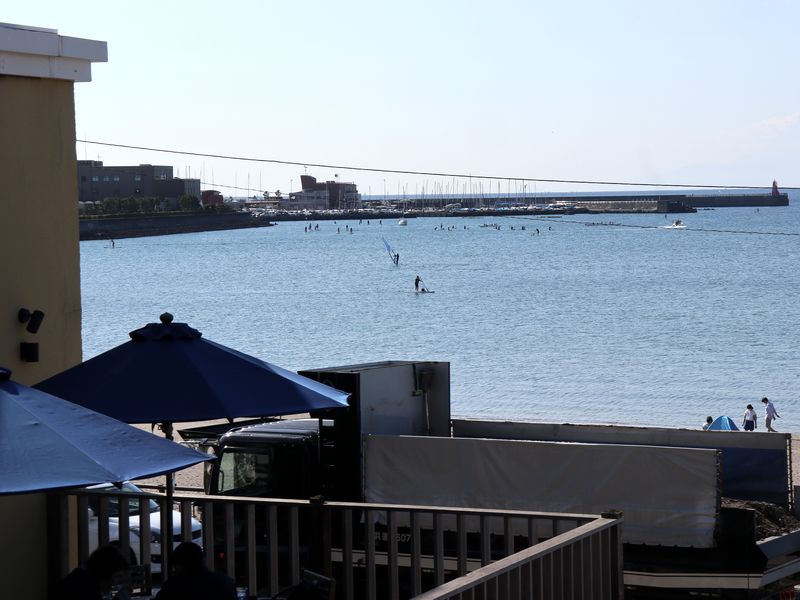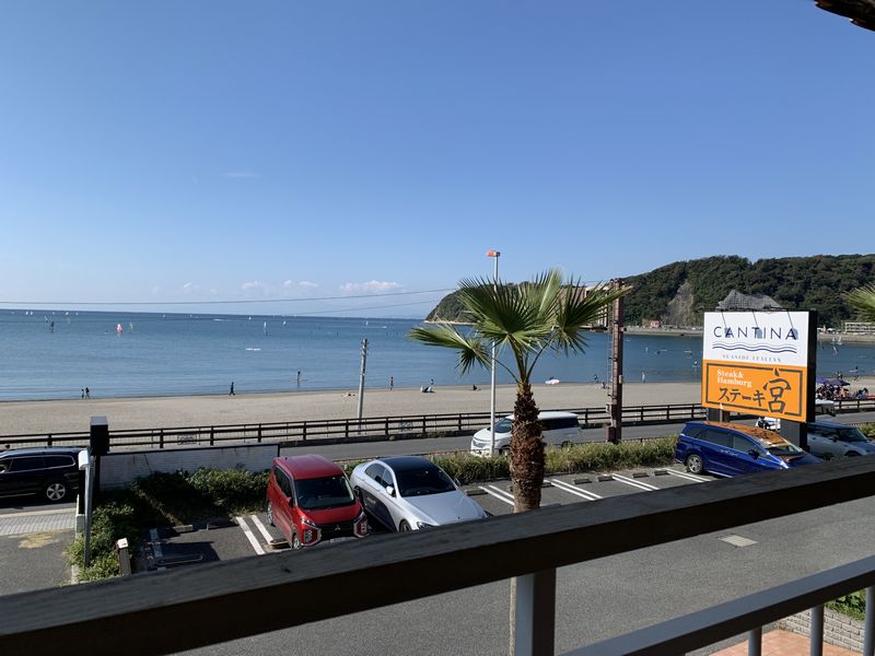 逗子海岸が目の前。左側には葉山マリーナが見えます。