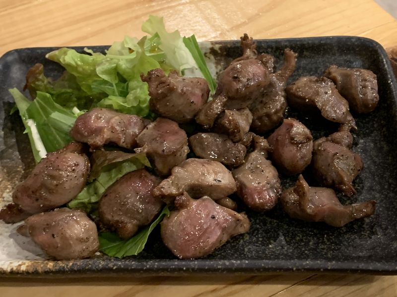 妻は鶏料理を頼んでいます。こちらの「すなぎも」と、