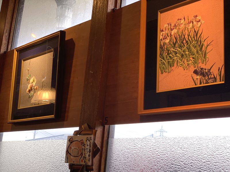 窓のところには額に入れられた絵が飾られていて、個展などが開けるようなミニギャラリーになっていました。