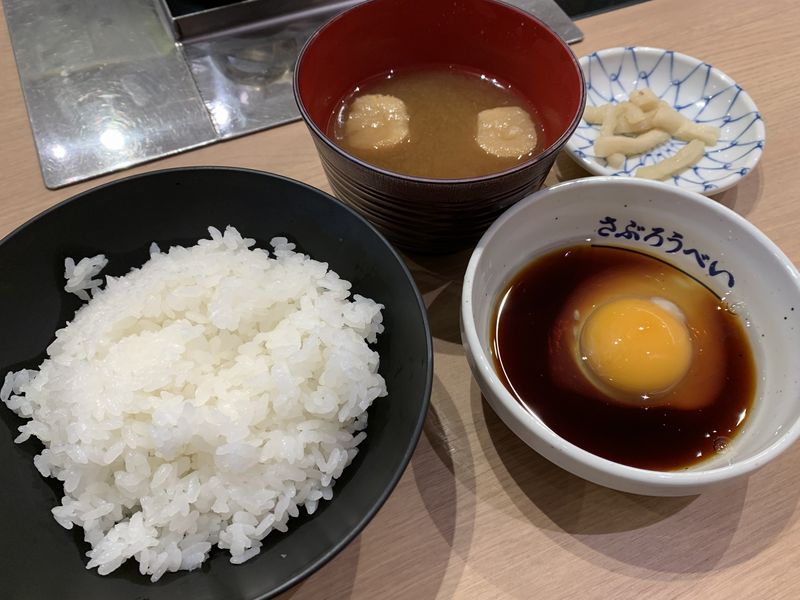 鍋にはご飯と味噌汁、漬物、卵が入った「秘伝の醤油だれ」が付いてきました。