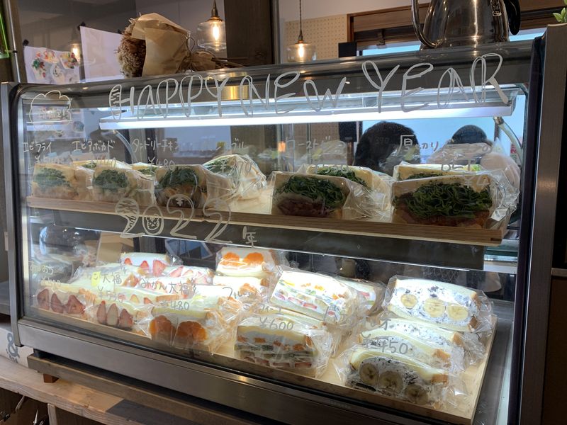 冷蔵ケースには美味しそうなサンドイッチが並んでいました。フルーツサンドも色々ありました。