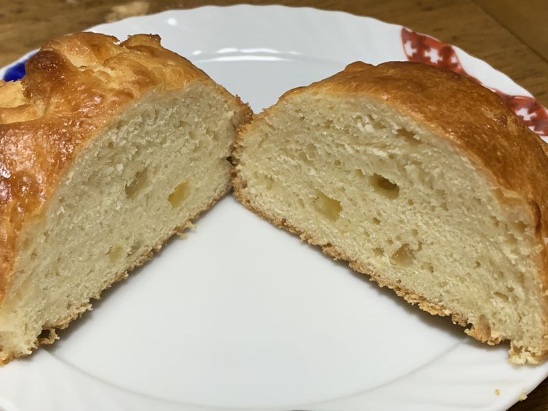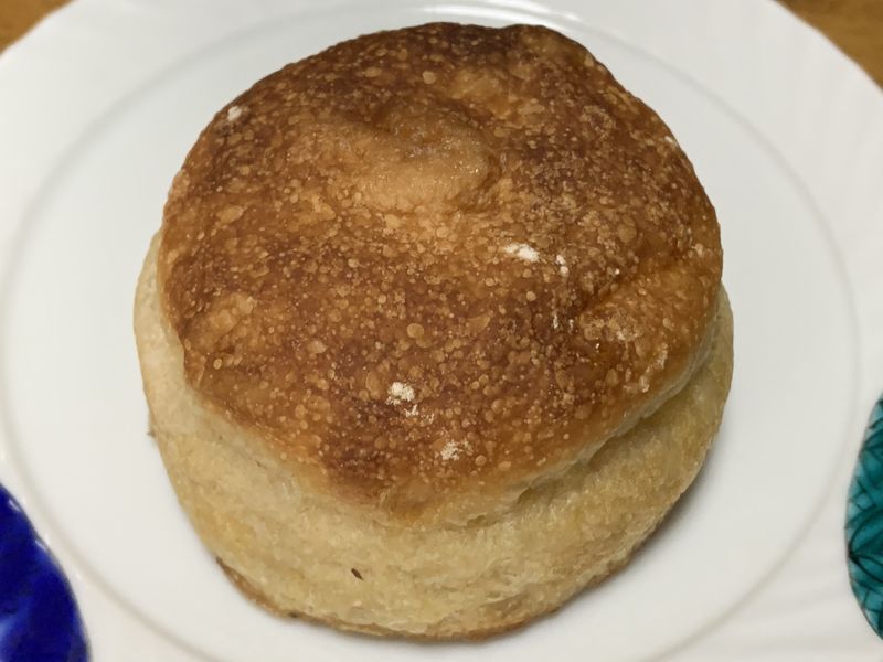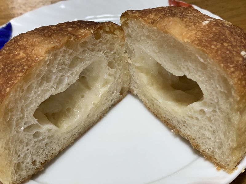 多加水の生地に有塩バターを包み、フランス産の塩をトッピングして焼き上げられ、温めると生地からバターが染み出てきました。もっちりとした食感のパンで美味しかったです。サイズは小さいです。