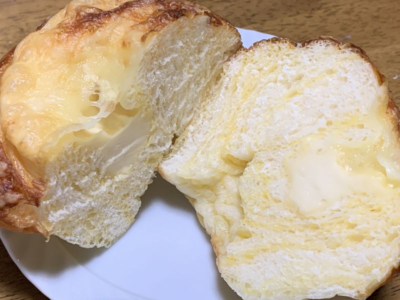 半分にカットするとこんな感じで、ソフトな食感でチーズがたっぷり入っていました。