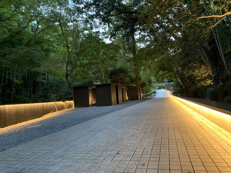 玄関テラスの横を抜けて、素敵にライティングされた道を奥の方へと進んで行くと「惣湯テラス」へと到着。