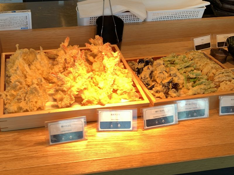こちらの朝食の特徴に一つが揚げ立ての天ぷらを味わえること。種類も豊富です。