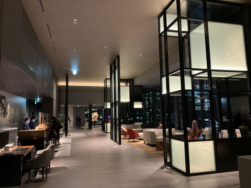 ロビー階は天井が高くめちゃ広いスペース。インテリアもアーバンな感じでまとめられていました。