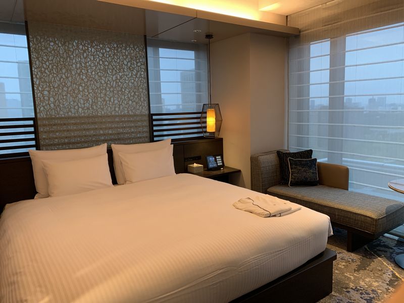 今回、デラックスコーナーキングに宿泊することにしました。ビルのコーナーに位置していて二面採光の部屋。見晴らしがいいホテルということで、その恩恵に最大限預かろうというわけです。