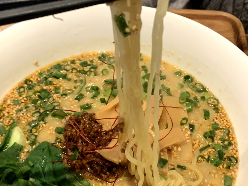 私も少し食べましたが、細麺でごもな風味と辛さもあって美味しかったです。