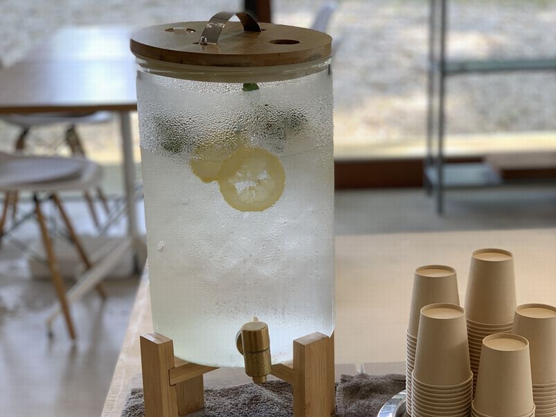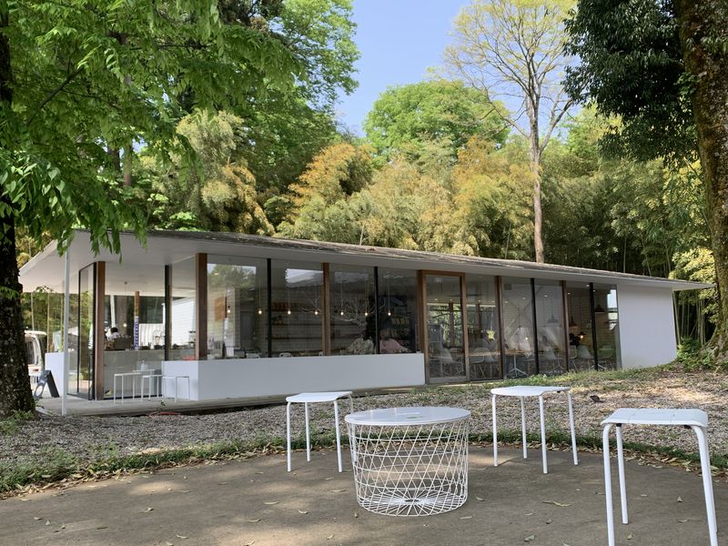 カーナビに住所を入れて向かいますが、周りを林に囲まれている中に突然白くておしゃれな建物が現れます。