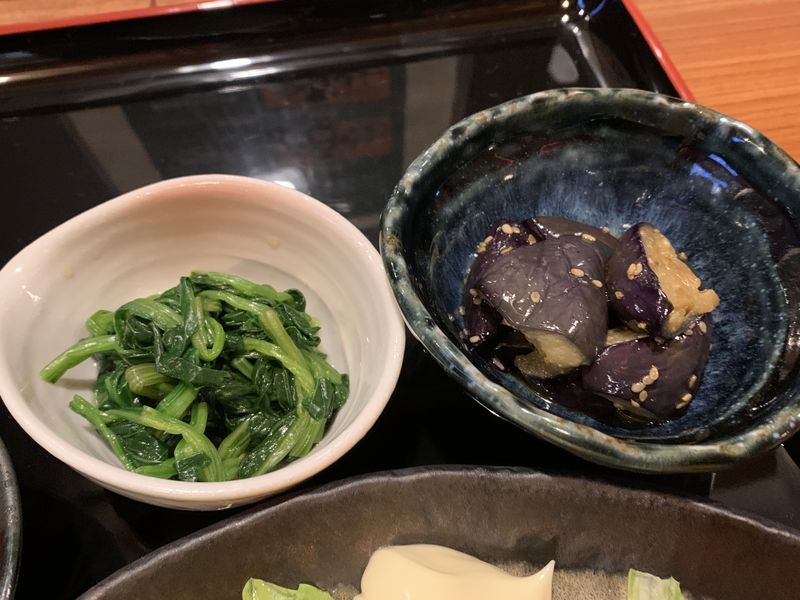 「日替わりランチ」には、メイン料理のほかに小鉢が2種類と、味噌汁・ご飯・漬物が付いていました。これで950円は今の時節では安いですね。
