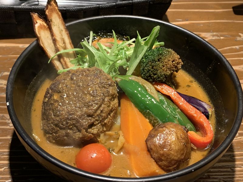 我々2人が頼んだのは奥芝商店の実店舗で不動の人気No.1メニューの「宗谷岬おくしばーぐとおくし畑のスープカレー」。