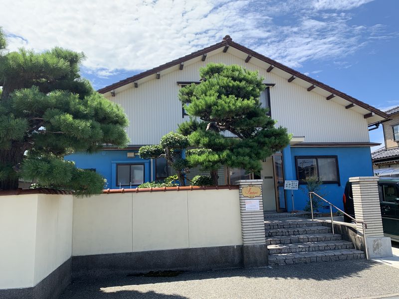 お店は日本建築の民家ですが、リフォームされていて、壁も本来の日本家屋では使われないような明るい水色が使われていました。