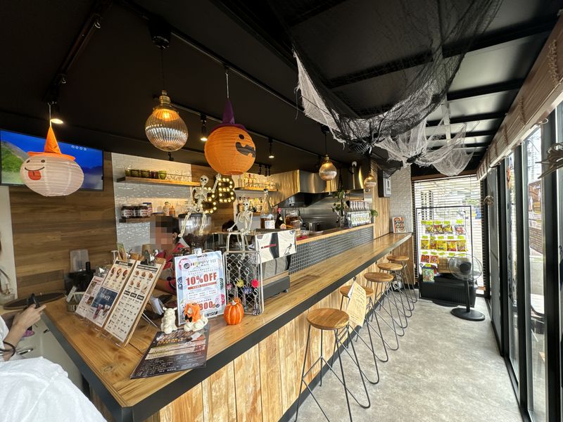 ここは、沖縄で10年間暮らしていた店長がやっているお店で、北谷にあるアメリカンビレッジをイメージしたインテリア。毎週金・土曜のみ、夜はバーの営業もしています。