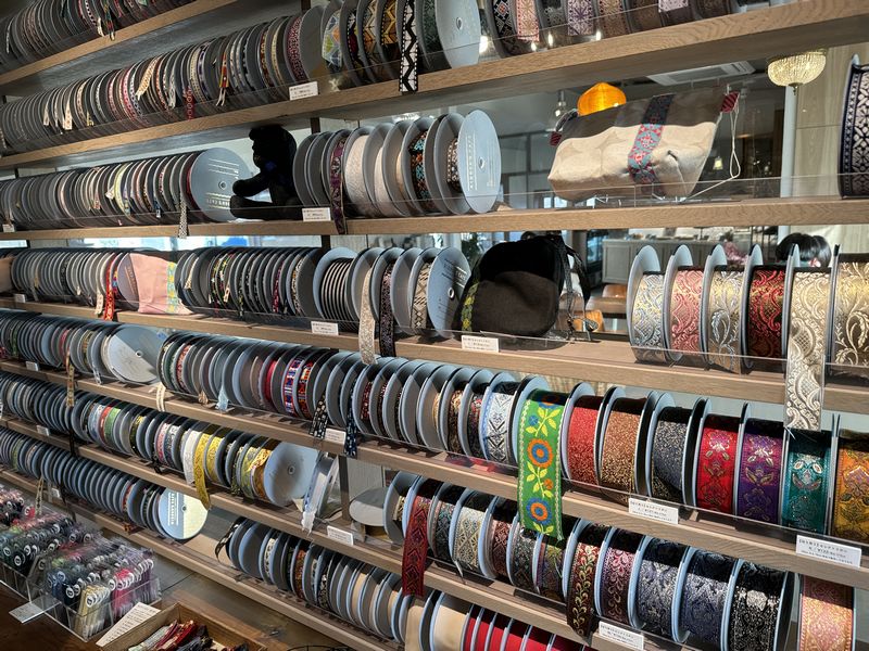 奥の方にはジャガードリボン、小物雑貨の販売、そしてワークショップスペースがあります。