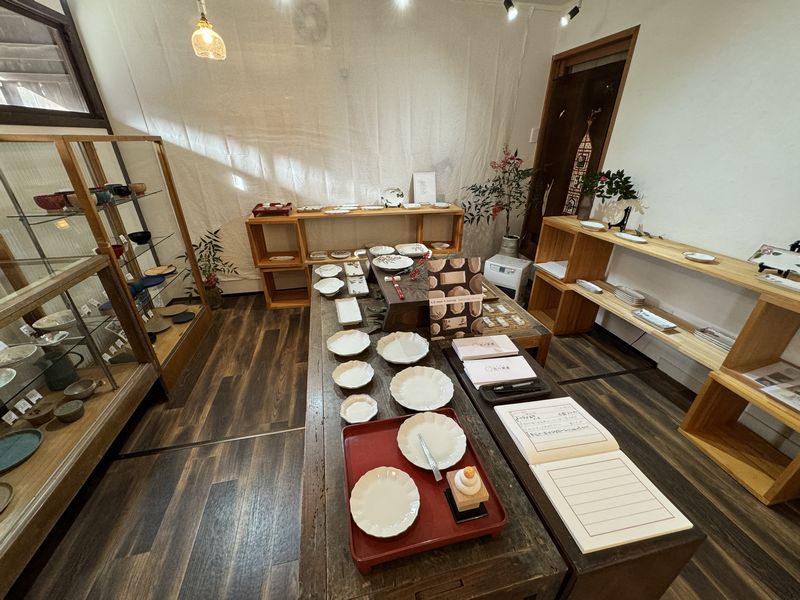 店内のギャラリーコーナーでは「九谷 shape&drawing 窯元宮吉製陶×元女貴之」というのをやっていました。