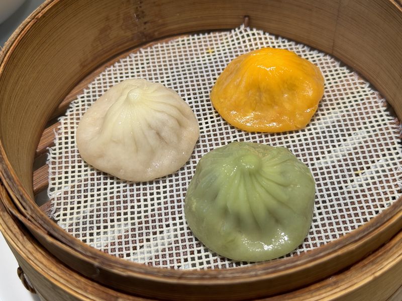 あと、妻のほうは小籠包を+300円で「三色小籠包」に変更していて、オリジナルと烏龍茶・辛辣の3種類を味の違いを楽しむことが出来ました。