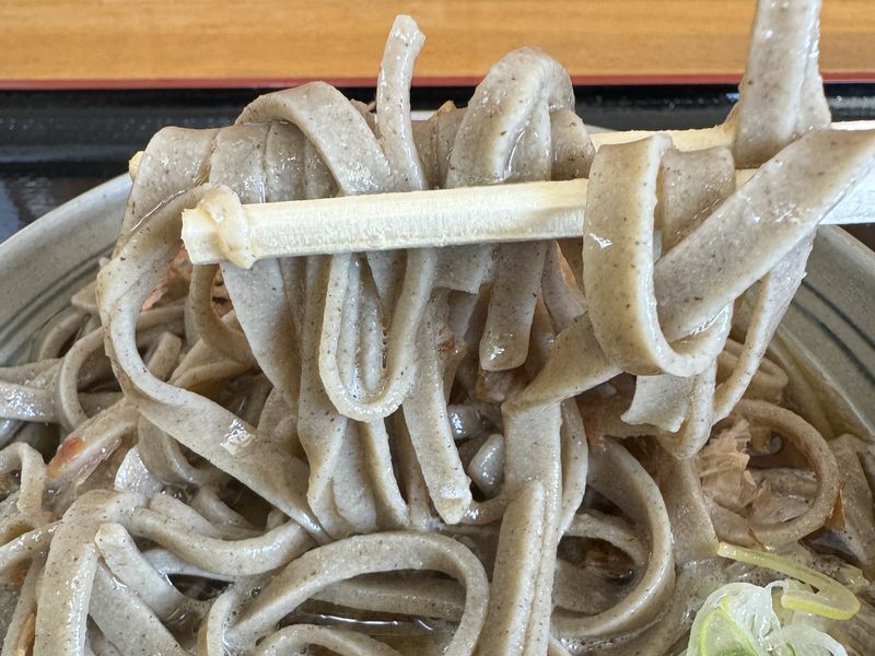 そばは手打ちで不揃いな幅で切られていていて短めです。
