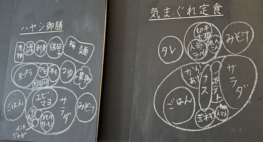 ランチタイムのみの営業で、11時~と13時~の2部制となっています。メニューはハヤシ御膳と気まぐれ定食の2種類のみ。カフェのみの営業もされていないようでした。