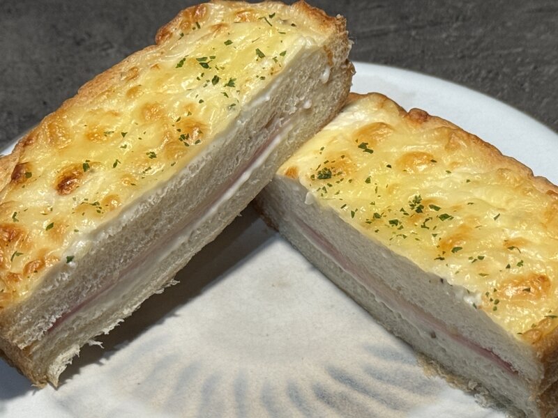 半分にカットするとこんな感じです。おいしいクロックムッシュでした。