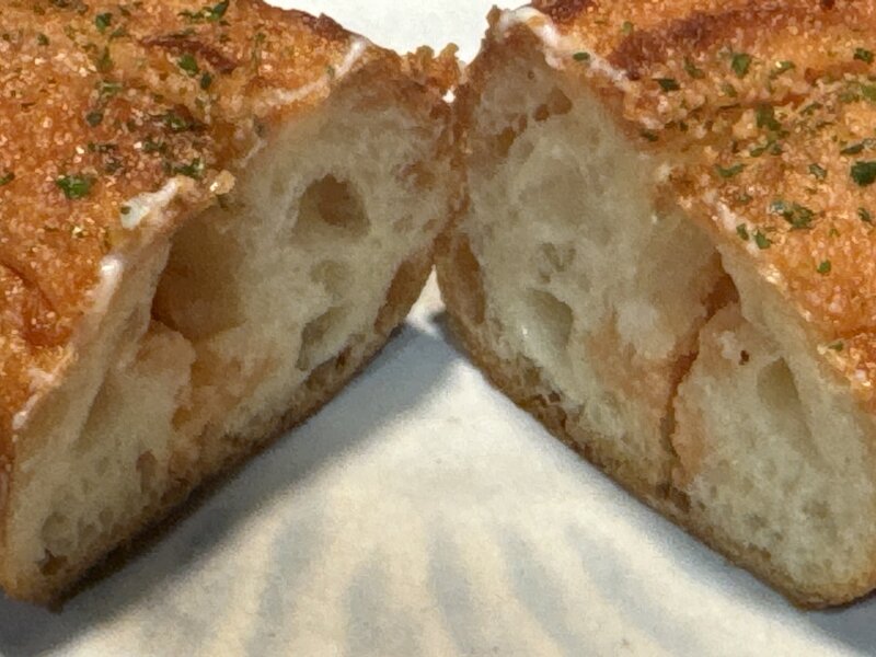 レンチンで食べてもしっかりとした食感のフランスパンで、中の明太ソースに負けない味でよかったです。
