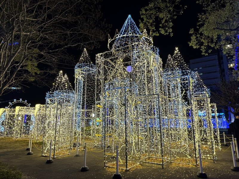 そして、夜は平和大通りでのイルミネーションを見に行きました。18年前にも現在ブラジル在住の広島出身のしゅうさんと一緒に見に行って以来でした。