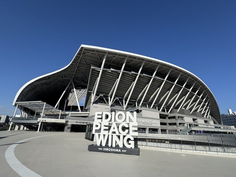 こちらは広島城のお隣にある「エディオンピースウイング広島」。平和つながりでの紹介。笑