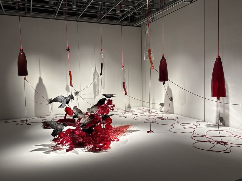 この展覧会は12月14日まで開かれていて、福井県出身の社会活動家・アーティストの長坂真護さんの故郷福井県内初となる美術館開催による個展となります。