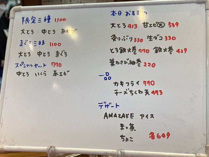 「梅貝(440円)」「白身の軍艦巻き」「トロ鉄火巻き」は写真なしです。