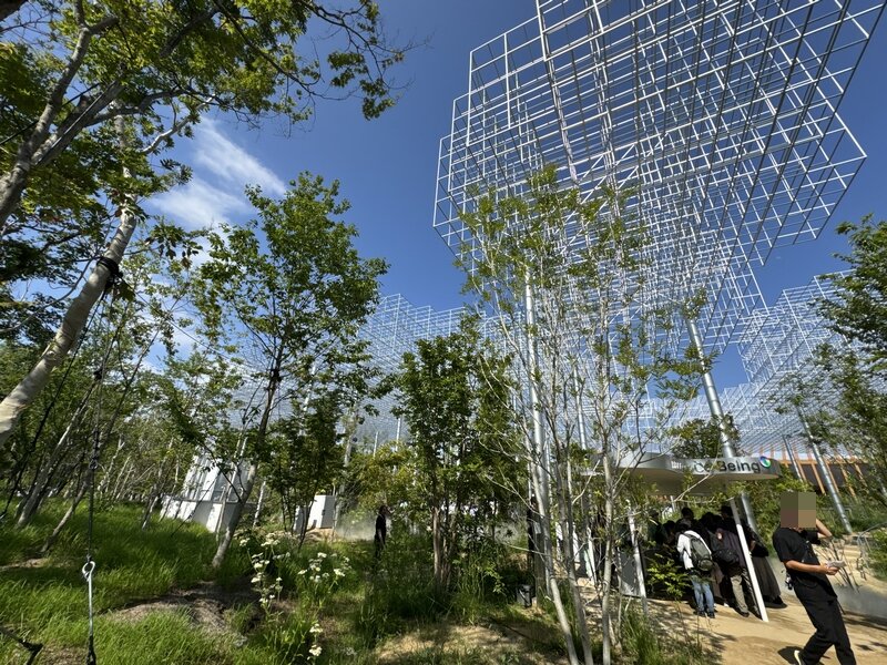 同じくシグネチャーパビリオンで金沢21世紀美術館の設計で知られる妹島和世+西沢立衛/SANAA が設計した宮田裕章氏が手掛ける「Better Co-Being」。キャノピーを架けただけのパビリオンでした。