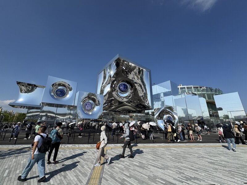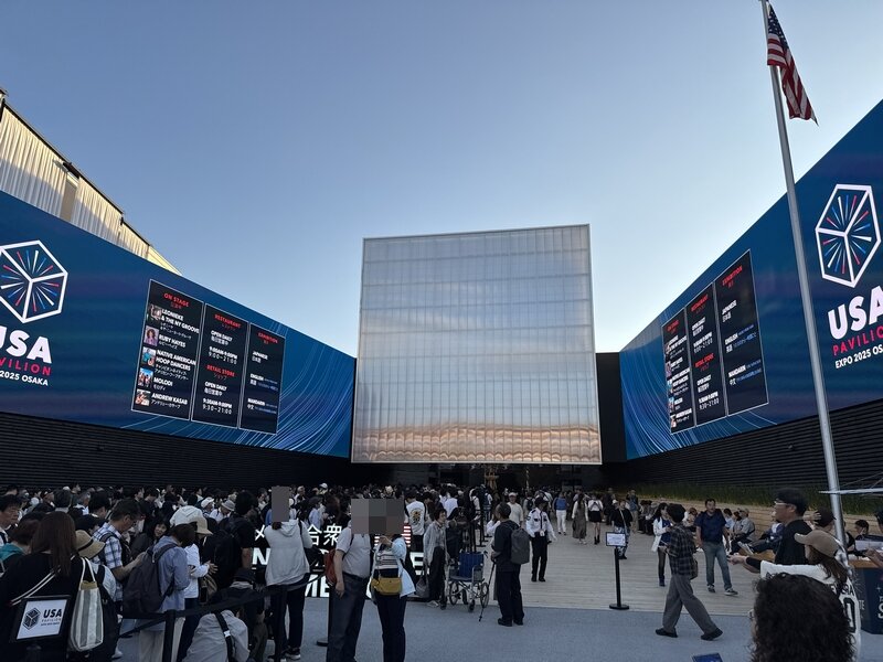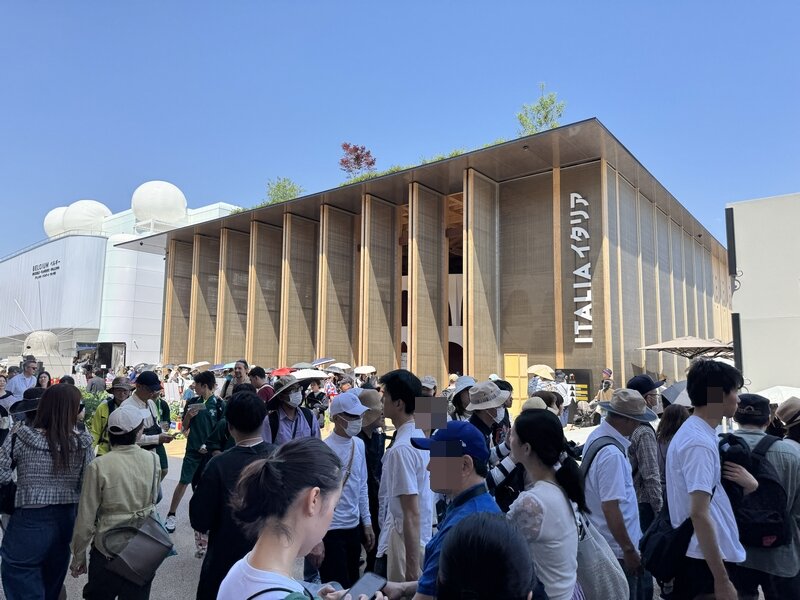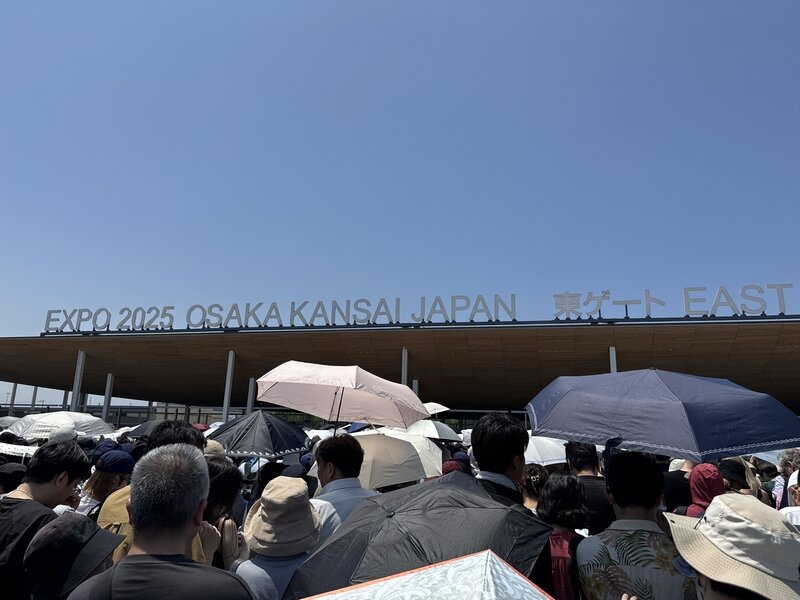 この万博は「並ばない万博」を掲げて電子チケットと事前予約制を原則としていますが、掛け声とは裏腹に、いたるところに行列ができていました。