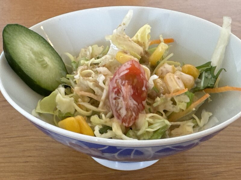 あと、ランチにはサラダとドリンクが付いていますが、サラダがご飯茶碗に盛られて出されたのに驚きました。