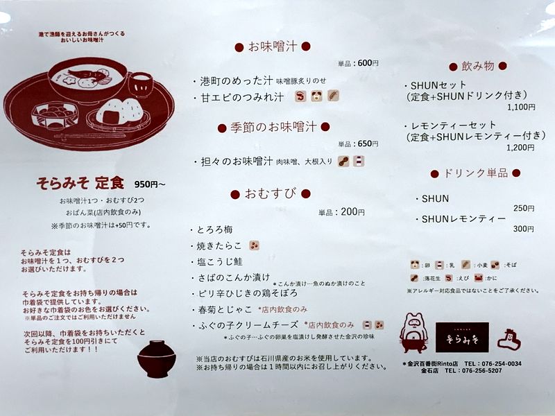 こちらはおむすびメニュー。具が10種類。テイクアウトが可能です。
