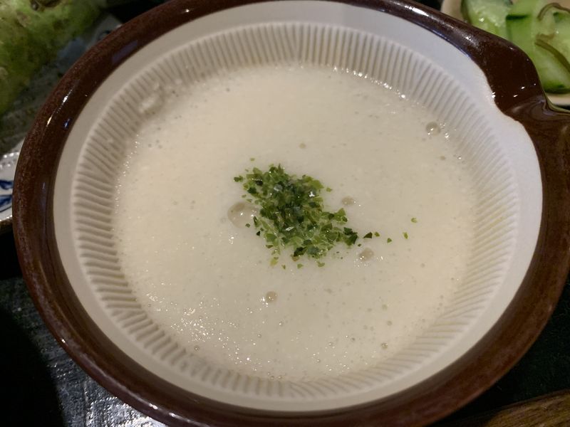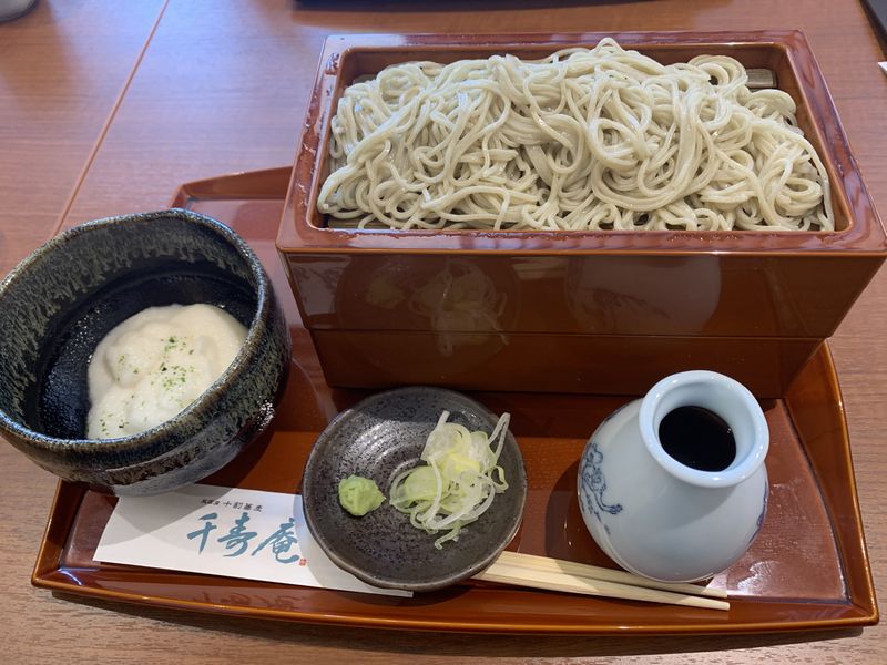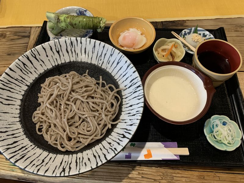 つけ汁をとろろに加えて蕎麦をつけて食べるのですが、混ぜるのがもったいないくらい。美味しかったです。