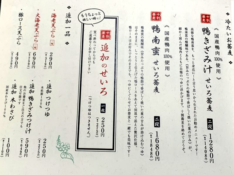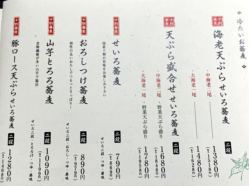 私は前回、「おろしそば」を頼んでいるので、今回は「とろろせいろ蕎麦(1,200円)」」を頼むことに。