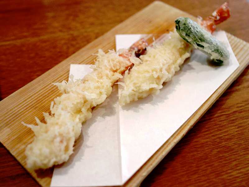 天ぷらを揚げているのをカウンター越しに見ていると、衣に水を混ぜる代わりにビールを入れて揚げられていました。そして揚げたてなのでもちろんサクッとしているのですが、比較的厚めの衣でもちっとした食感もあって、美味しかったです。