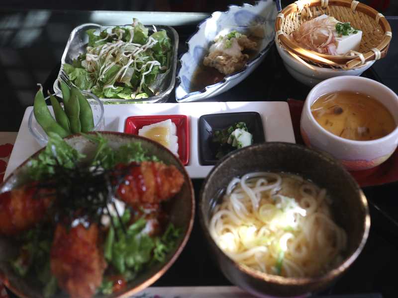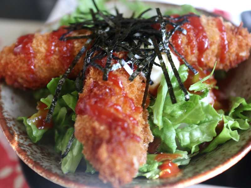 妻が頼んだ「レディースランチ(税込1,000円)」は、この日はソースカキフライ丼がメインで、カキは広島産でした。
