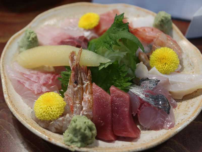 上出長右エ門窯の九谷焼の皿に乗せられて出された「寒ブリ」は脂が乗っていて、もみじおろしで食べると後口もよく食べることが出来ます。