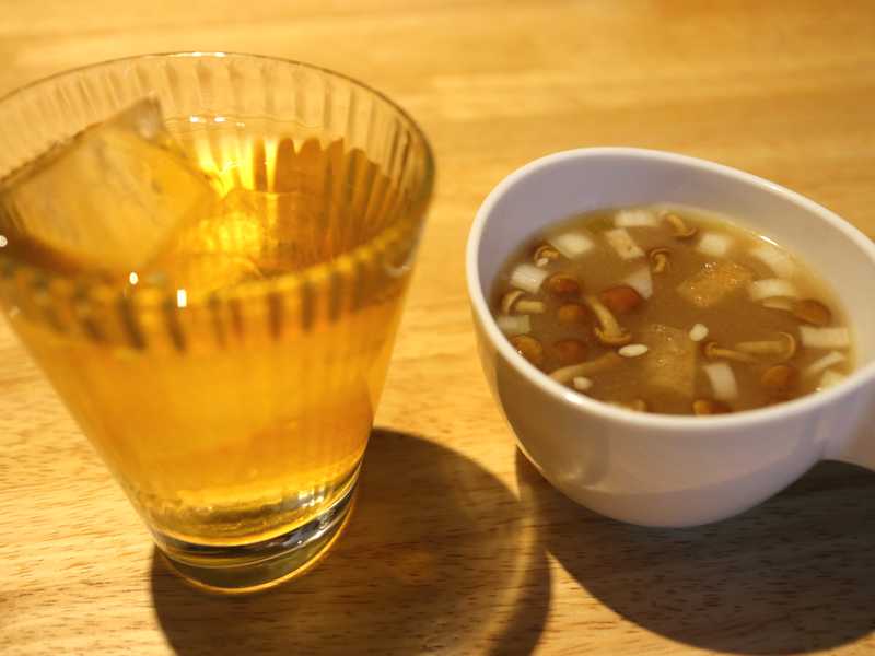 サラダとコンソメスープが付いていて、ハチミツは栃の花の蜜です。