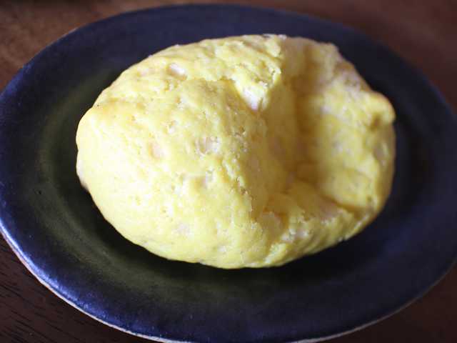 スプーンで切ると、こんな感じです。中はパプリカライス。